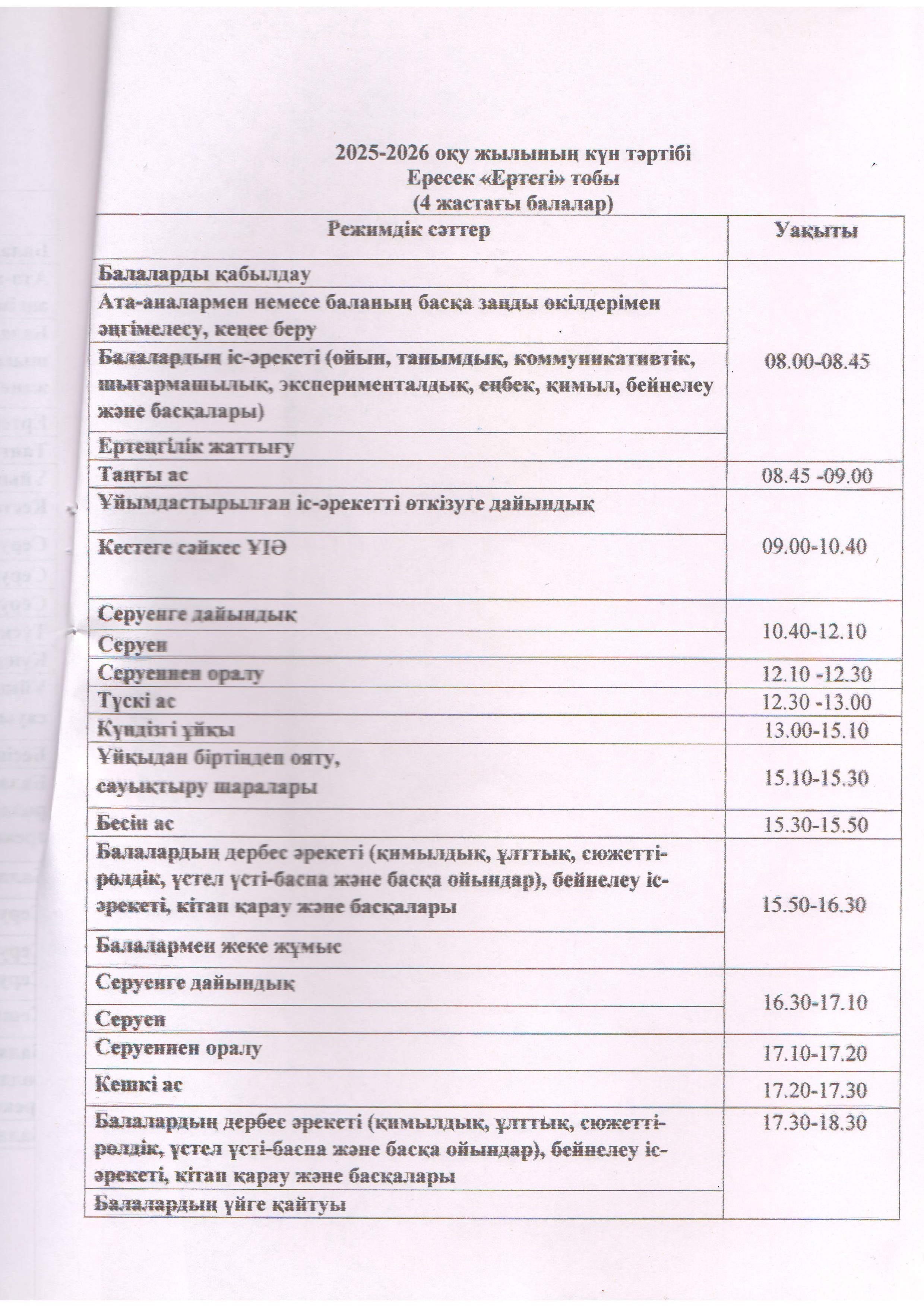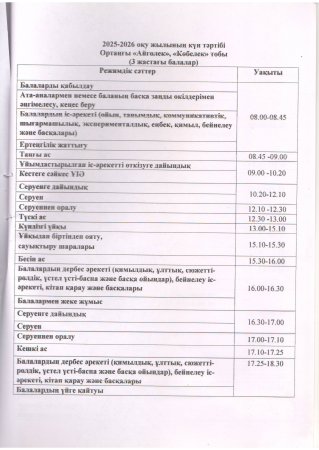 2025-2026 оқу жылына арналған күн тәртібі